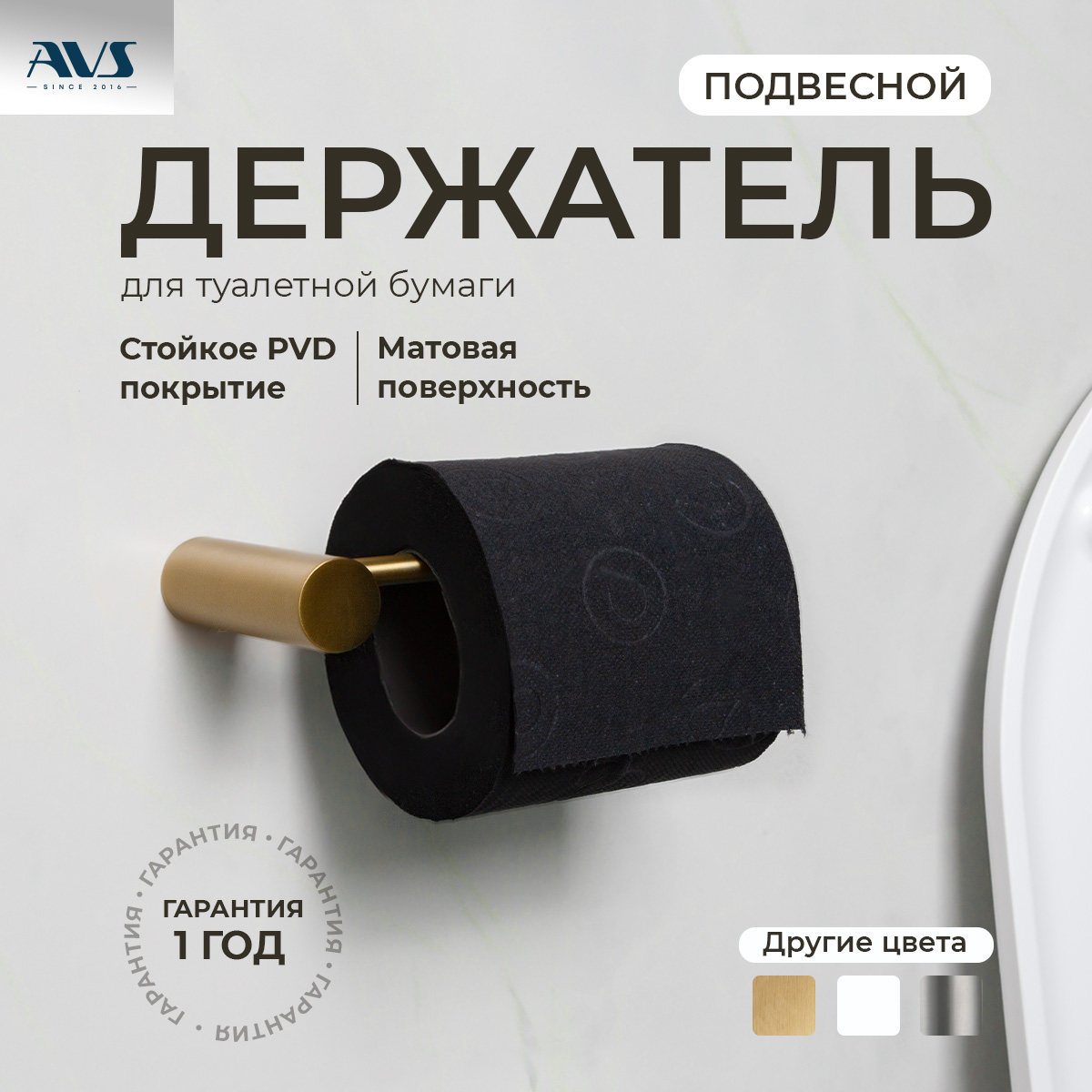Держатель для туалетной бумаги AVS Slimmer брашированное золото